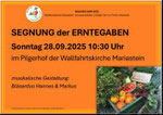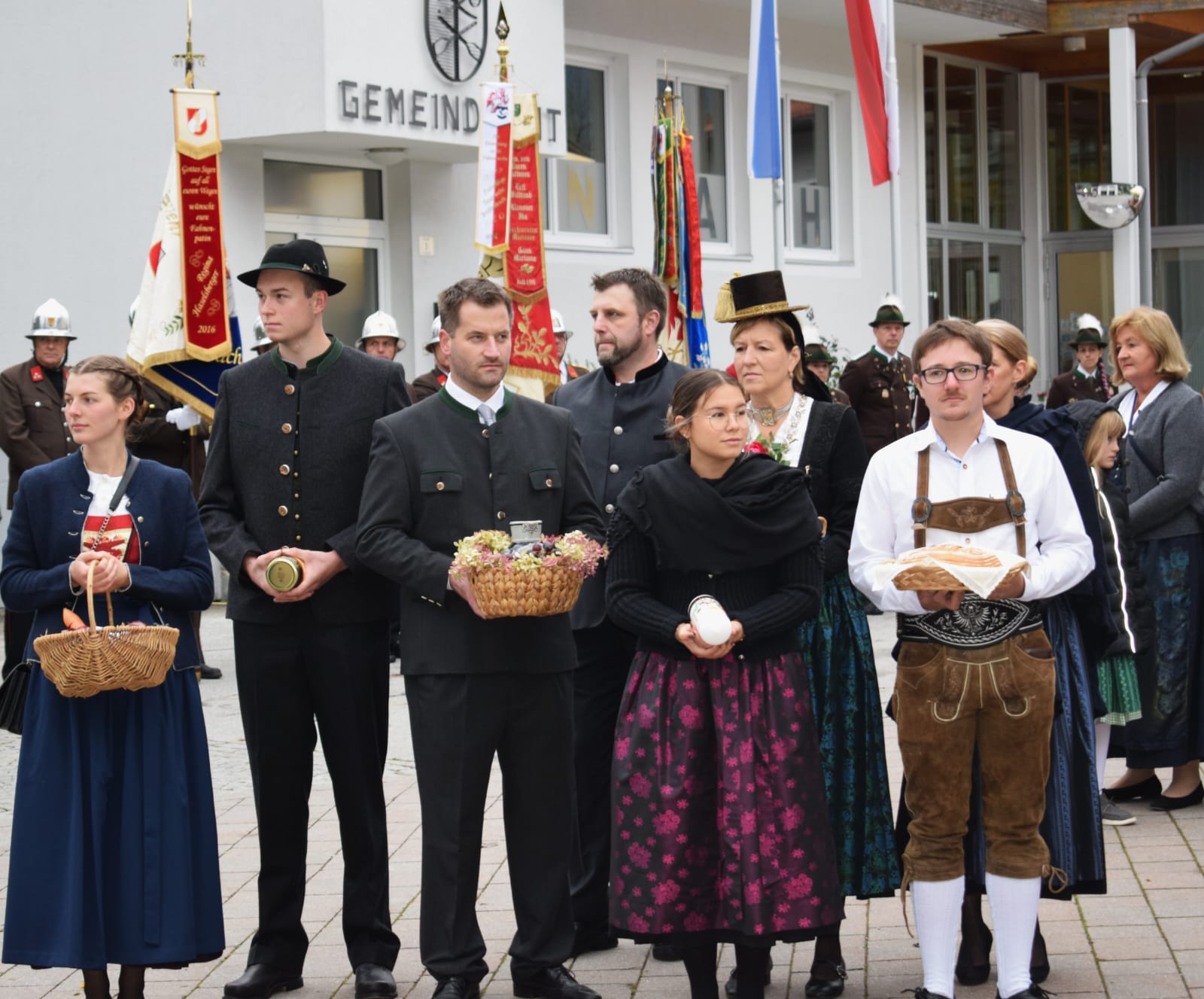 9:00 Segnung der Erntegaben beim Dorfbrunnen und gemeinsame Prozession in die Kirche. Festgottesdienst und anschließend Pfarrfest "Unterm Schirm". Es spielte die Tennamusig. Gesorgt war für Speis und Trank, auch zum Mitnehmen. Bei der "Stillen Auktion" wurden wieder 10 unbezahlbare Objekte versteigert. Auch ein Schätzspiel gab es und Spiel und Spass für Kinder. Vergelt's Gott an alle, die mitgeholfen, mitgefeiert und geboten haben!