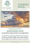 Sunday Sole Abendgottesdienst "Awesome God" am 12. Oktober um 17:30 für Jugendliche, junge Erwachsene und Junggebliebene mit Musik von SAMAS. Danach Begegnung mit Getränken und Snacks vor der Pfarrkirche Angath.