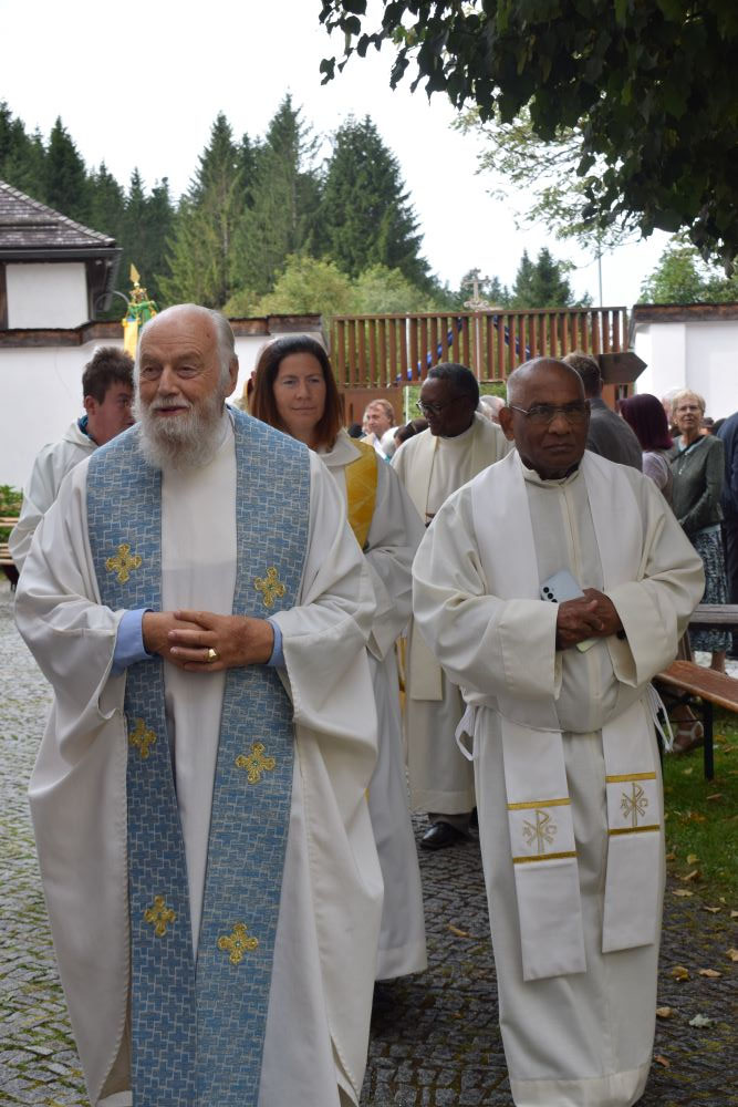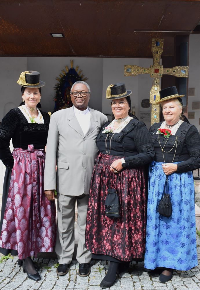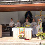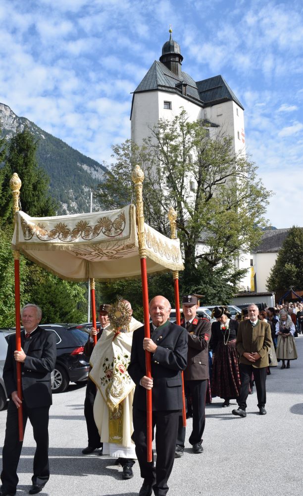Festmesse mit Dr. Josef Pletzer, dem neuen Pfarrer in Kufstein, einem pensioniertem Priesterkollegen, P. Evarist Shayo, Altpfarrer Matthias Oberascher und PA Mona Mraz. Die Musikkapelle Angerberg Mariastein und 4 Herren des Kirchenchors Mariastein sorgten für die festliche, musikalische Gestaltung. Pfarrer Dr. Pletzer trug die Monstranz unter dem Tragehimmel bei der anschließenden Prozession. P. Evarist gratulierte Matthias zum 45. Priesterjubiläum und rief alle auf gemeinsam ein Gebet anstelle eines materiellen Geschenkes zu sprechen. Traditionell wurden die Weinbeerweckerl gesegnet und der Kirchenchor Mariastein sorgte für kulinarische Verpflegung der Gäste. Danke allen, die vorbereitet, mitgeholfen und mitgefeiert haben! Für Blumenschmuck, Böllerschießen, Festkleidung (Kassettl, Tracht), Fahnenträger, Himmelträger, Musiker, Sänger, Kuchenspender, Schaumrollen, Aufräumer und vieles mehr. Vergelt's Gott!