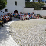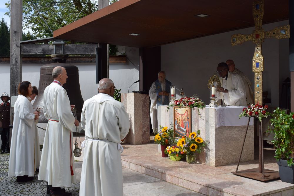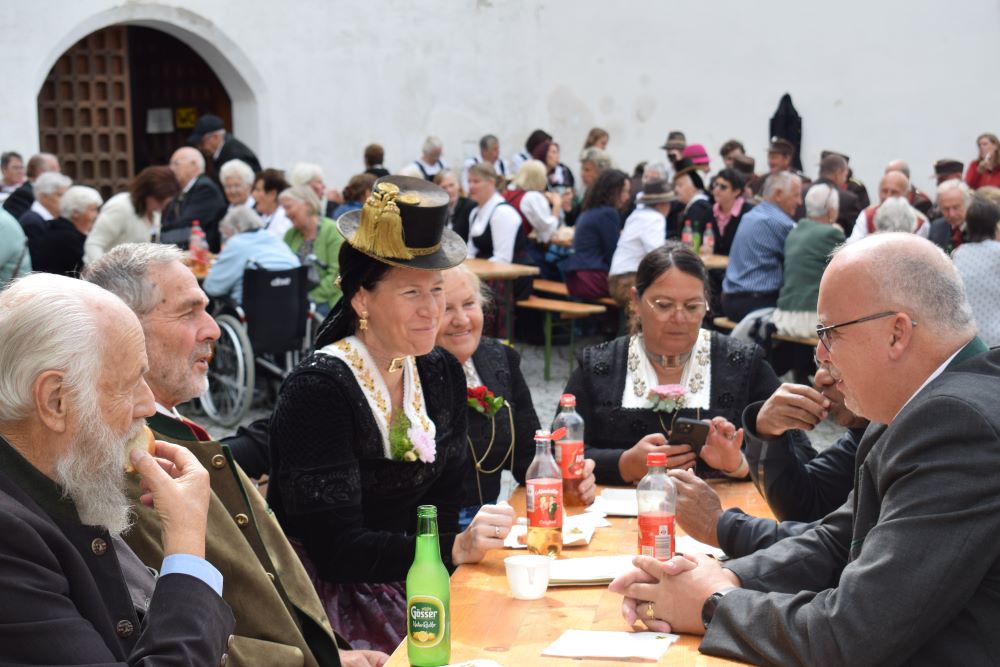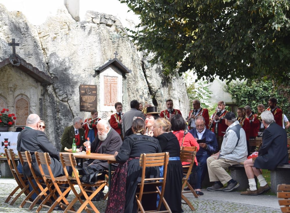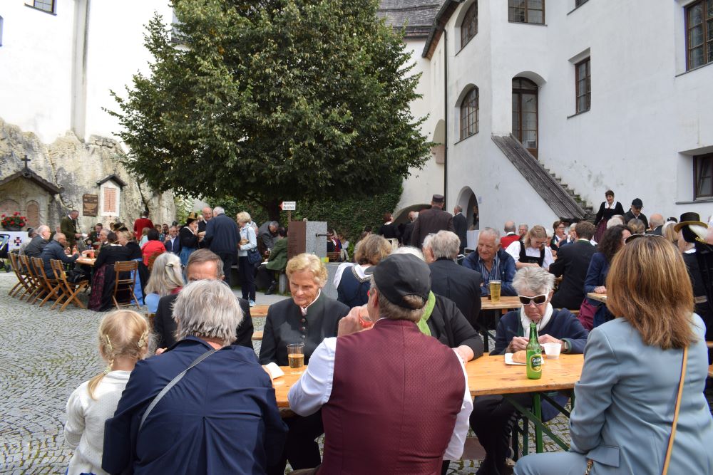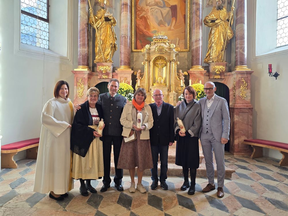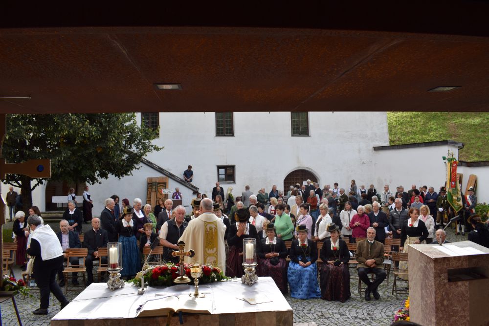 Unterländer Wallfahrt in Mariastein am 21. September 2025 im Pilgerhof mit Festprediger Abt Markus Eller vom Stift Scheyern (Spender unserer Pilgerglocke) und mit Wallfahrtskurat P. Evarist Shayo, Dechant Dr. Stefan Schantl, Pfr. Christian Hauser (Wörgl), Altpfarrer Matthias Oberascher und PA Mona Mraz. Die musikalische Gestaltung übernahmen die Kirchtag Bläser. Anschließend gab es geweihte Weinbeerweckerl und Wein vom Brunnen im Pilgerhof.